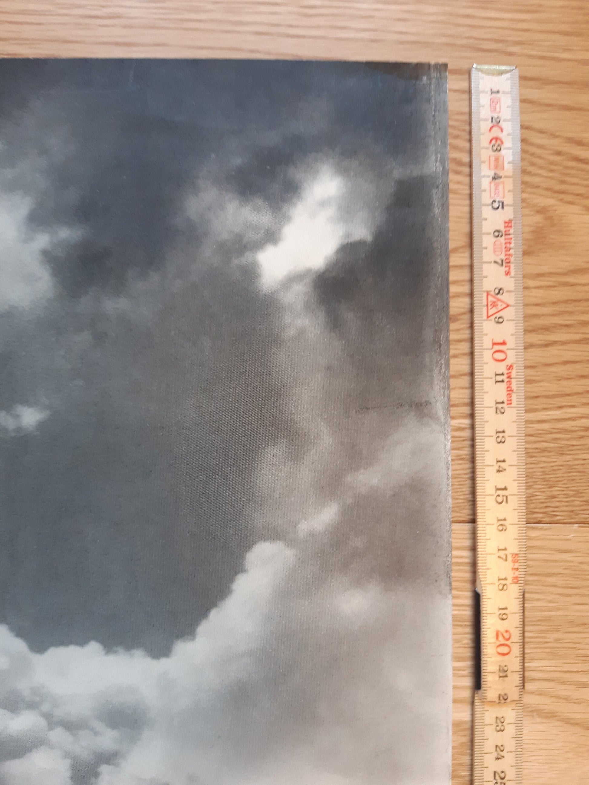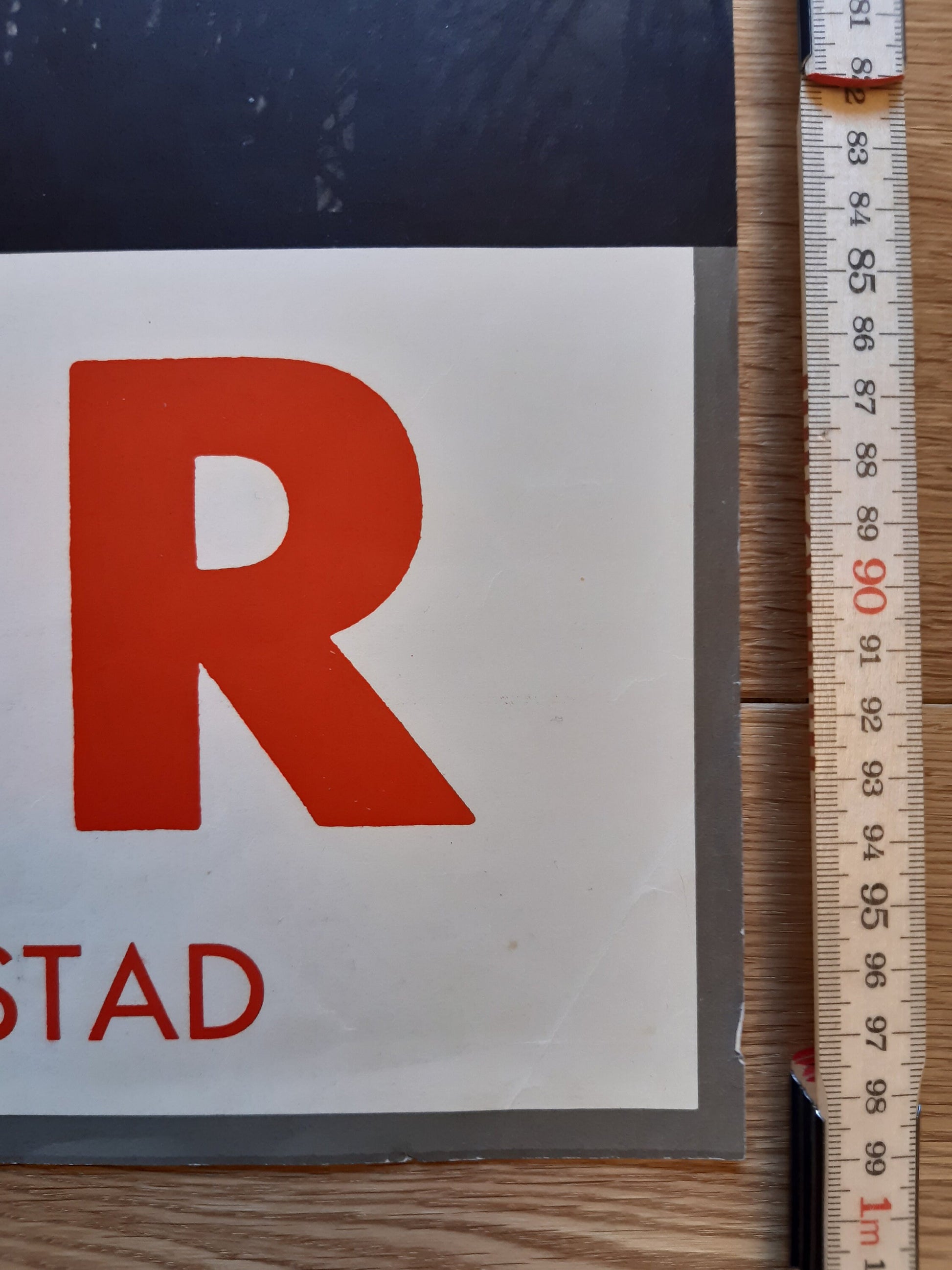 The poster is a silkscreen, printed 1936. It is in used condition with several knitters, some zigzag folds, some tiny tears at the borders and some general slight yelloing.
