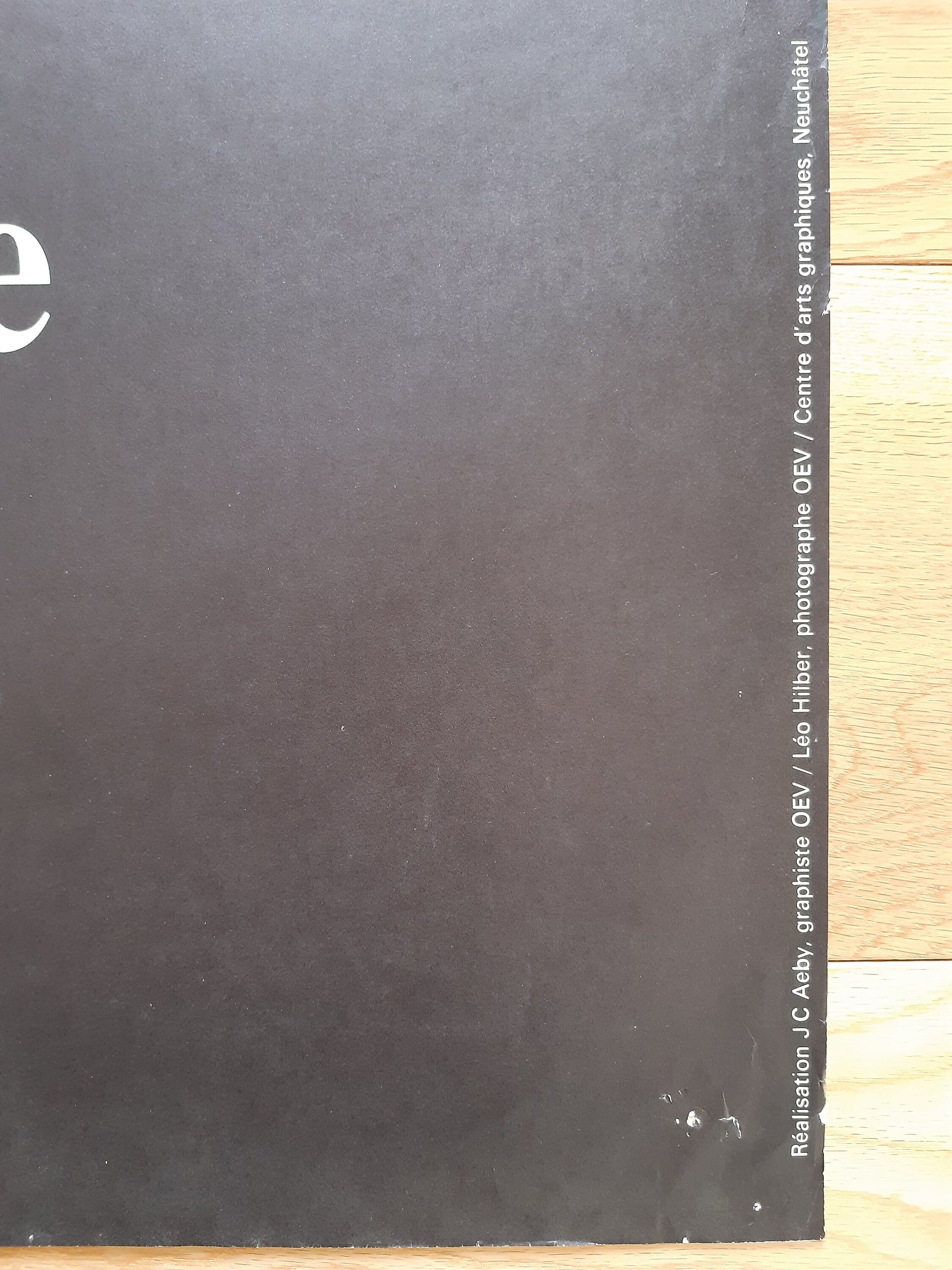 This original poster has been designed to advertise an exhibition at the Museum in Firbourg, Switzerland about medieval sculpture in Bordeaux, France. It is in used condition with pinholes and some small tears.