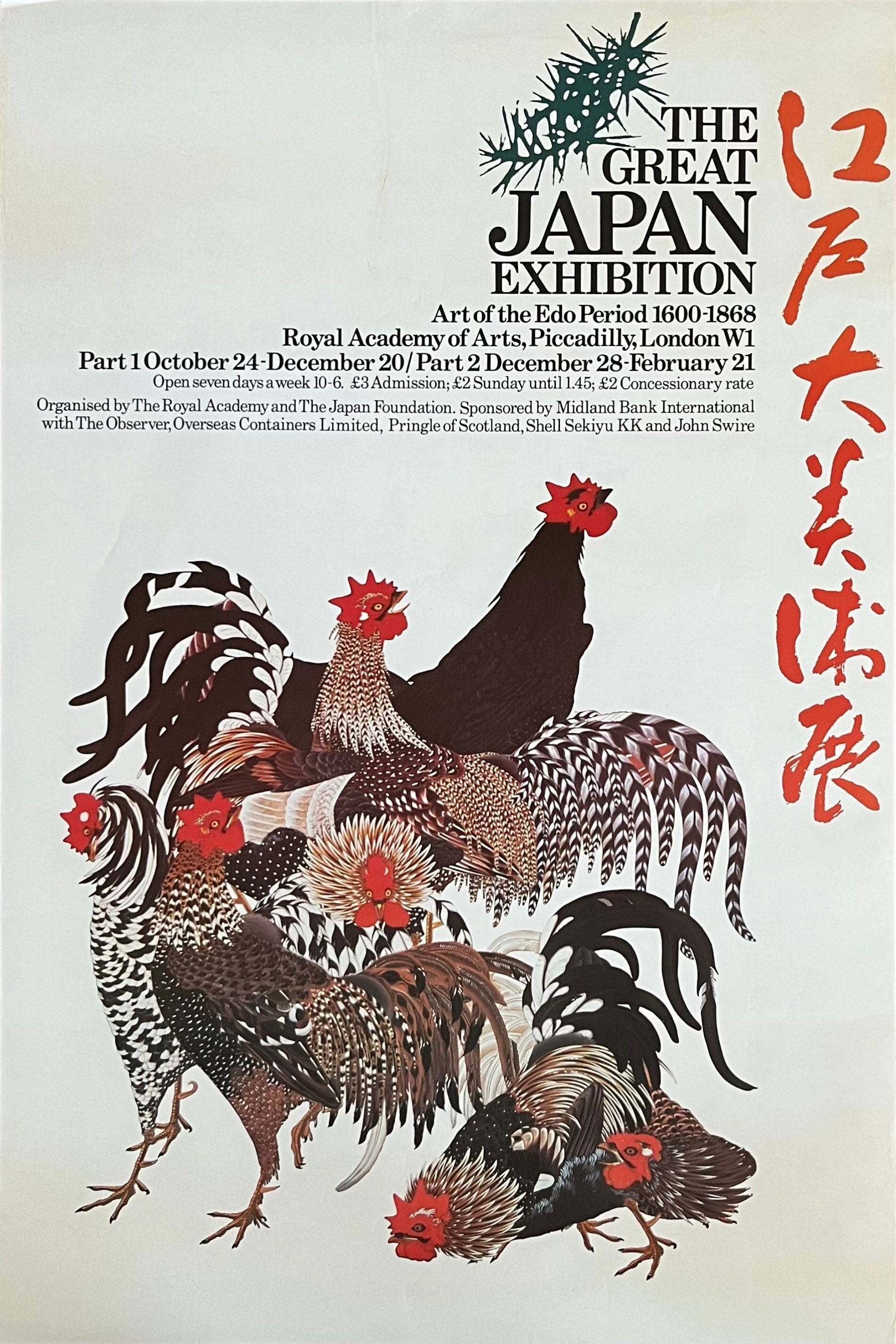 This is a beautiful art poster that was part of "The Great Japan Exhibition" at the Royal Academy of Arts in London in 1982. It is in good condition with light yellowing and few knitters along the borders.