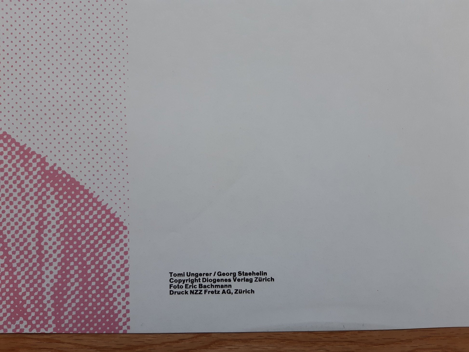 This is an original art poster by Tomi Ungerer for his exhibition in Zurich, Switzerland in 1982.