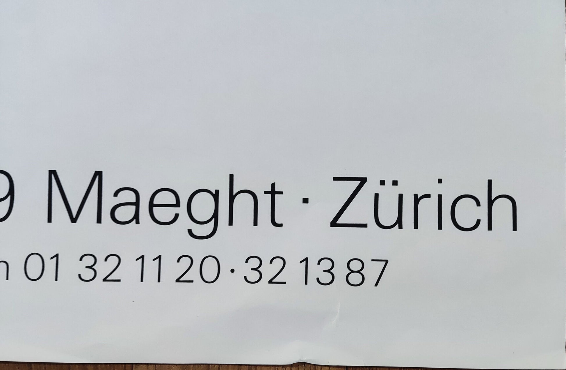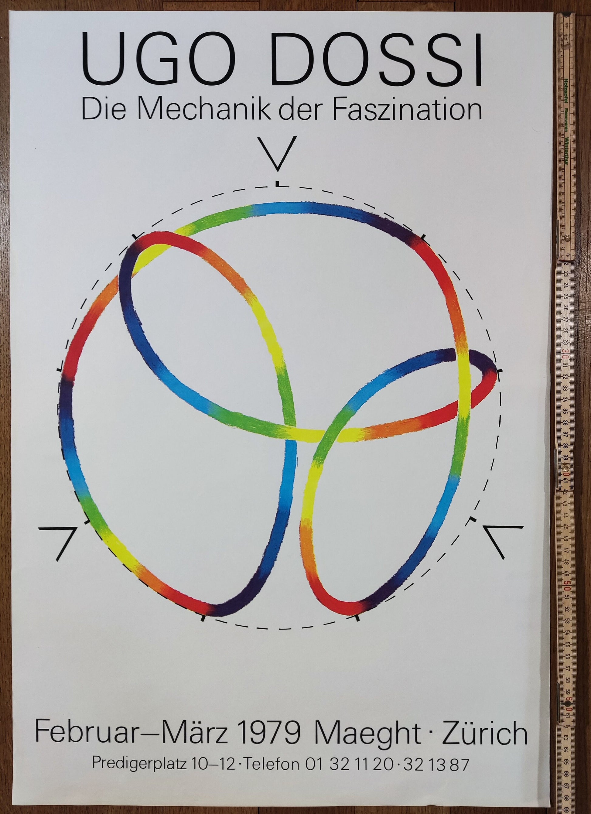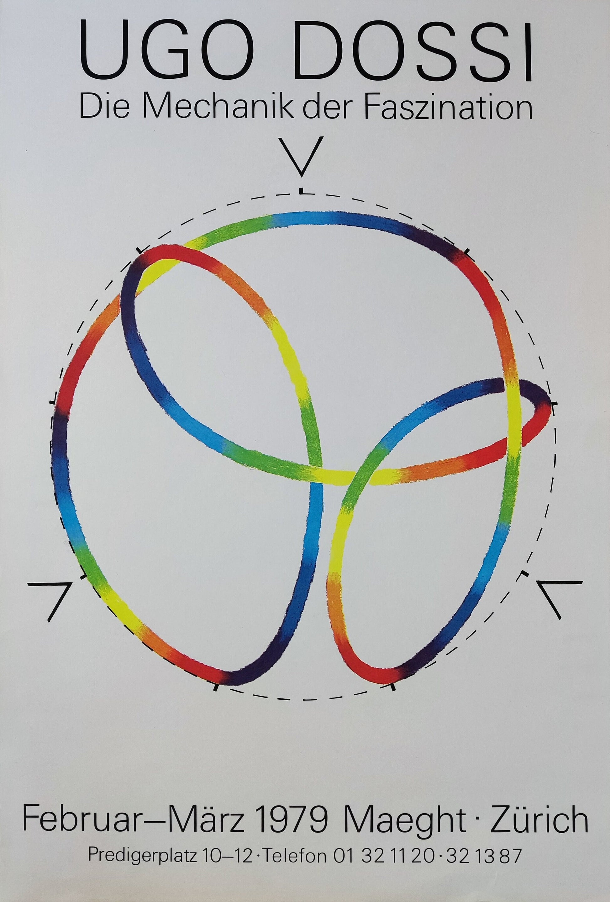 This is an original art poster by german Ugo Dossi advertising an exhibition at the Gallerie Maeght in Zurich, Switzerland in 1979.