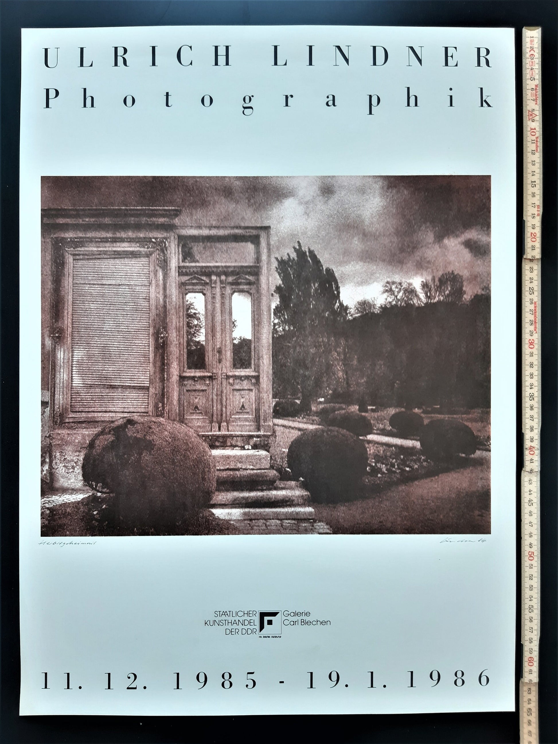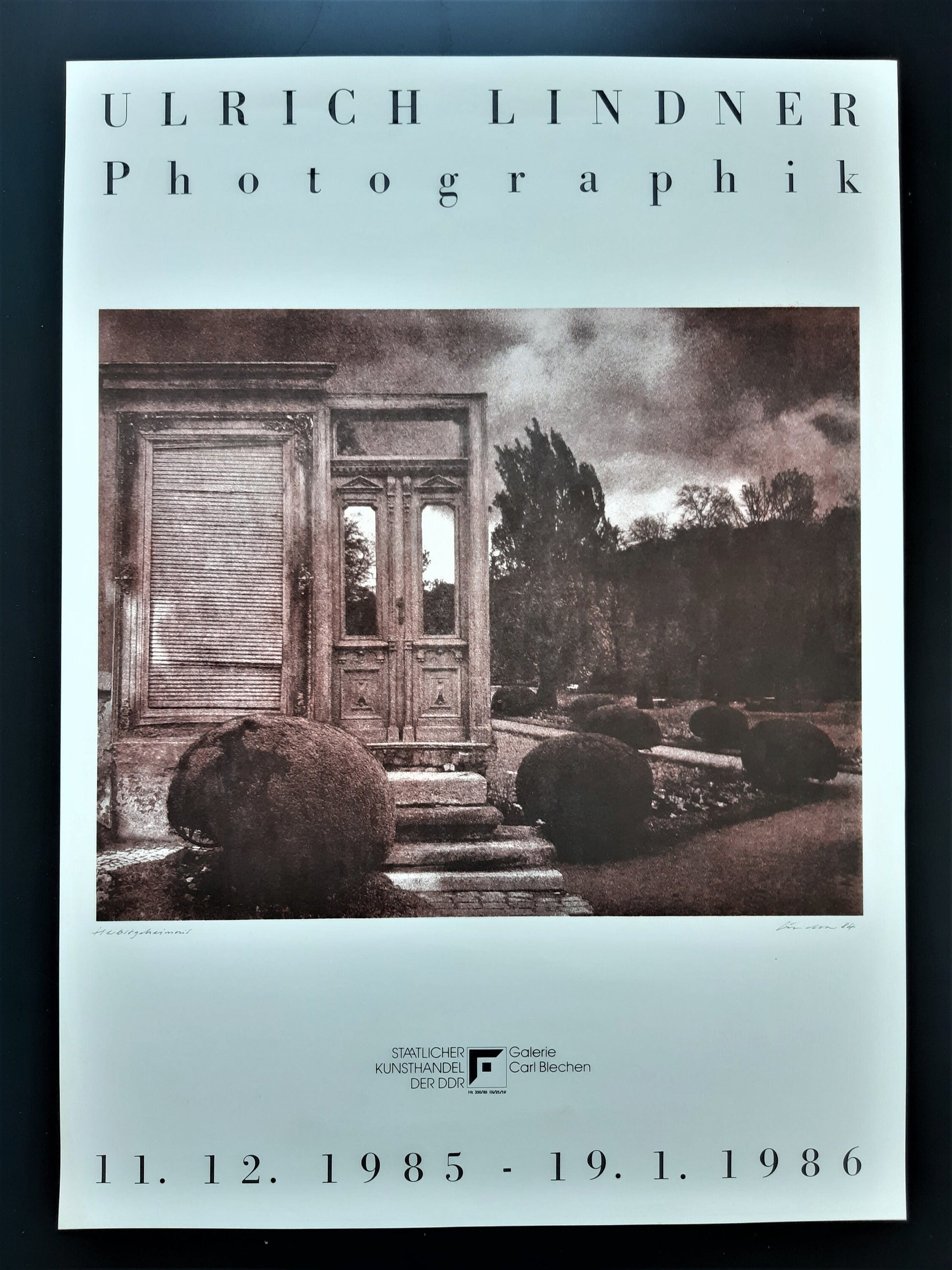 Original art photo poster for an exhibition in Germany in 1985 with photographic works of Ulrich Lindner, a german photographer (*1938). The poster is in very good condition.