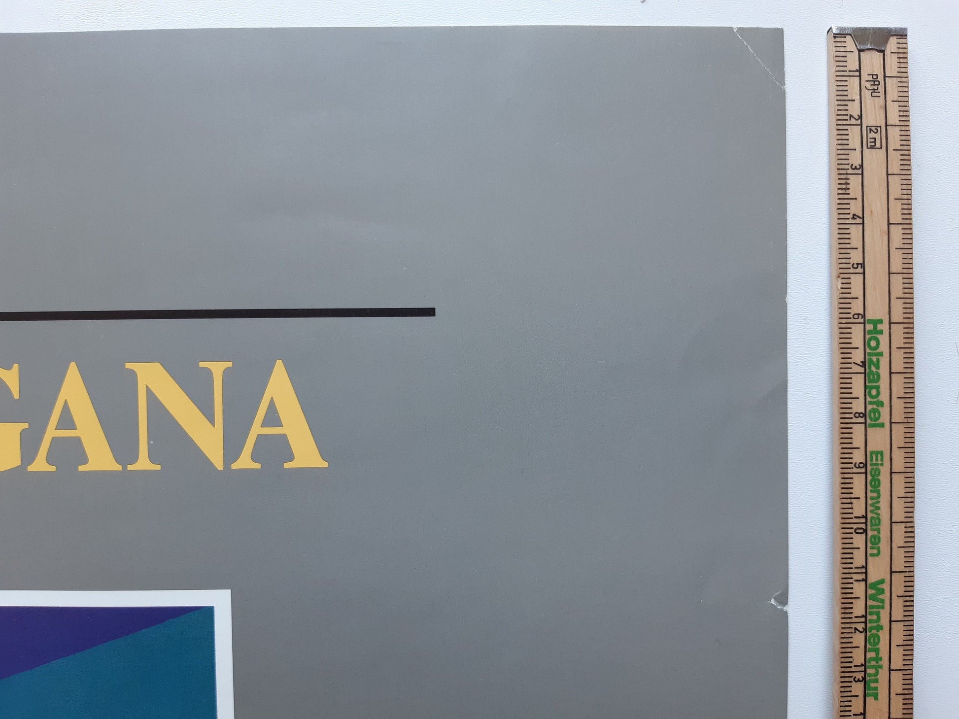 This is an original art poster for an exhibition in 1987 in Bremen, Germany, with the artwork "Fata Morgana" of Urs Lüthi, a Swiss artist (born 1947). The poster is in good condition with mild handling marks at the borders.