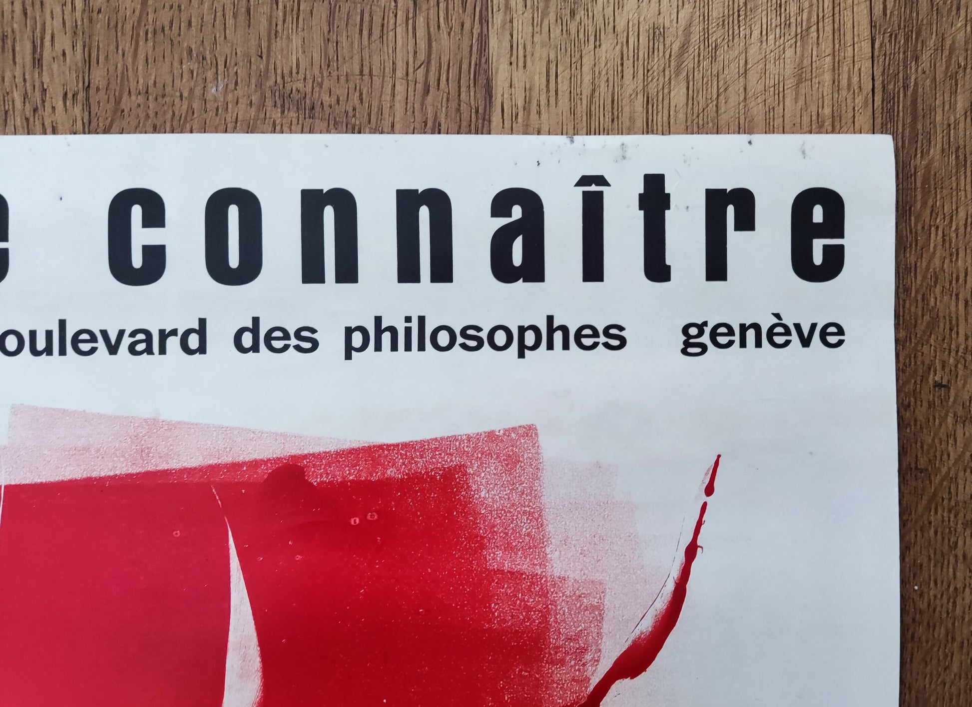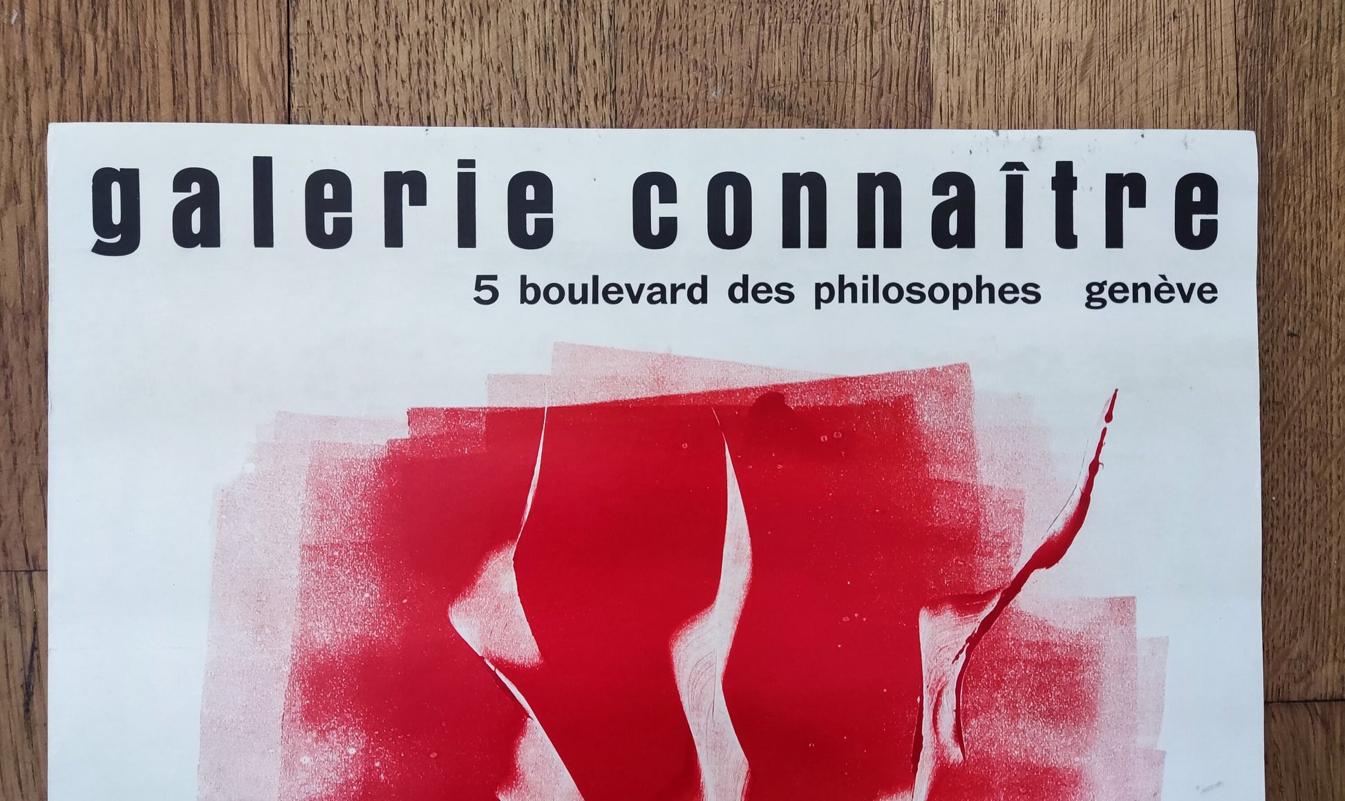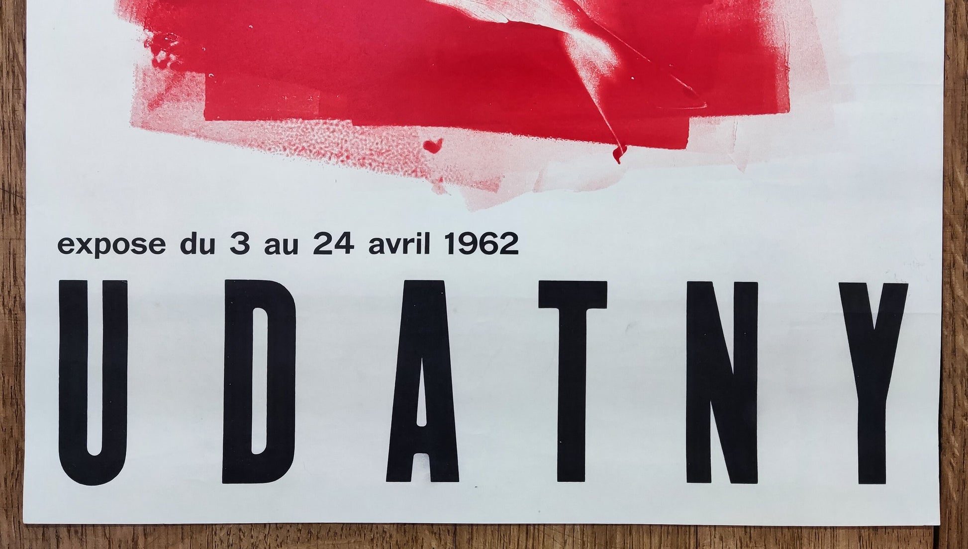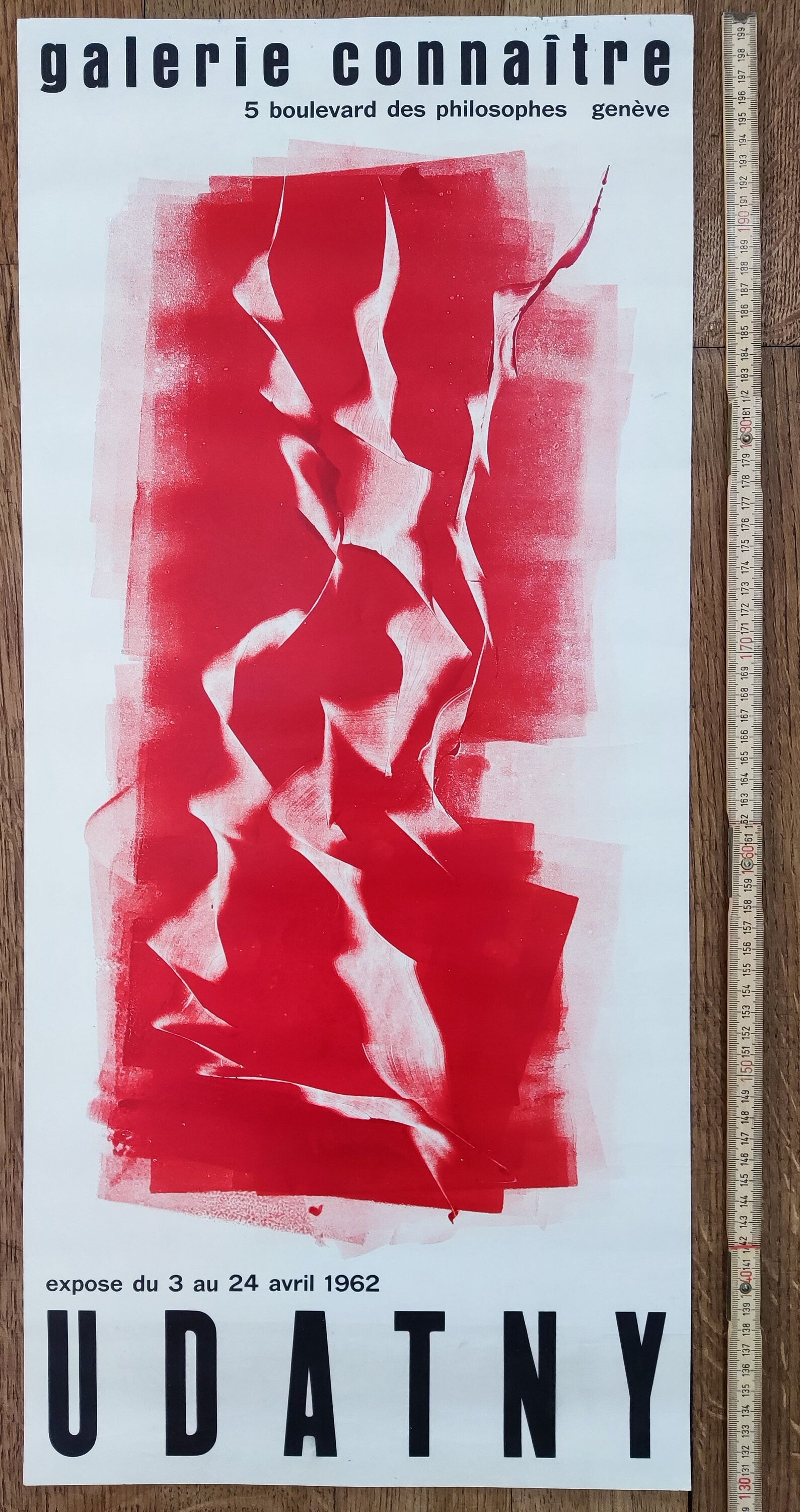 This poster by Udatny was released by the Galerie Connaitre in Geneva in 1962. Vladimir Udatny (1920-1972) was a Croatian post-war & Contemporary artist.