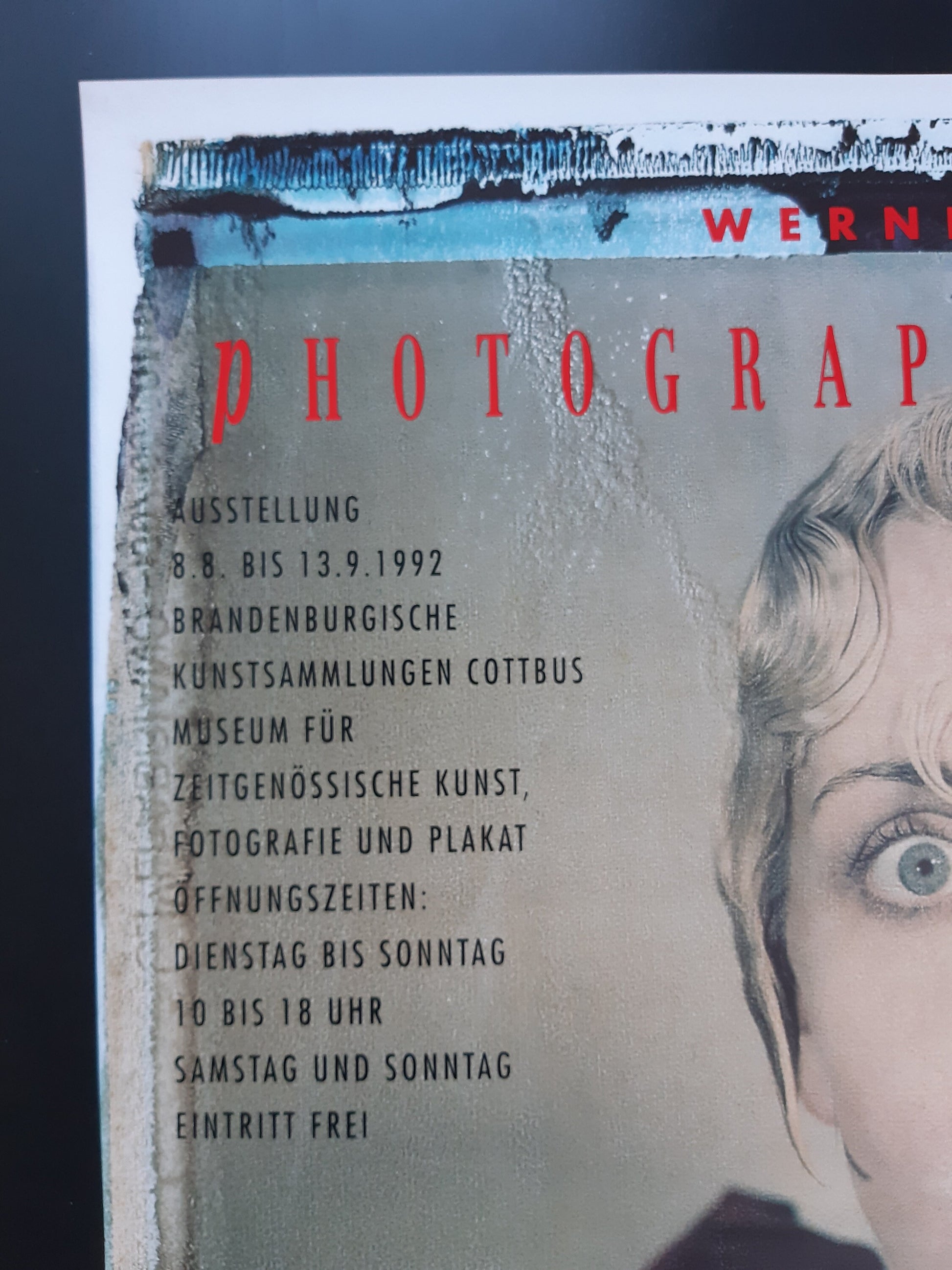 This is an original art exhibition poster advertising an exhibition in Cottbus, Germany in 1992. It is in very good condition. Werner Pawlok (born 1953) is a German artist and photographer.