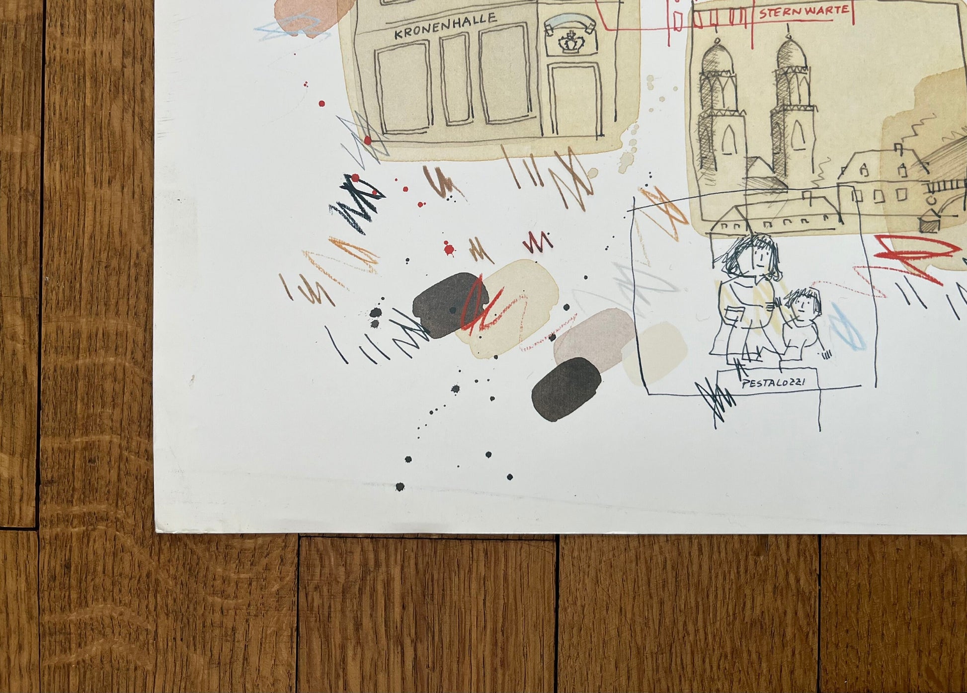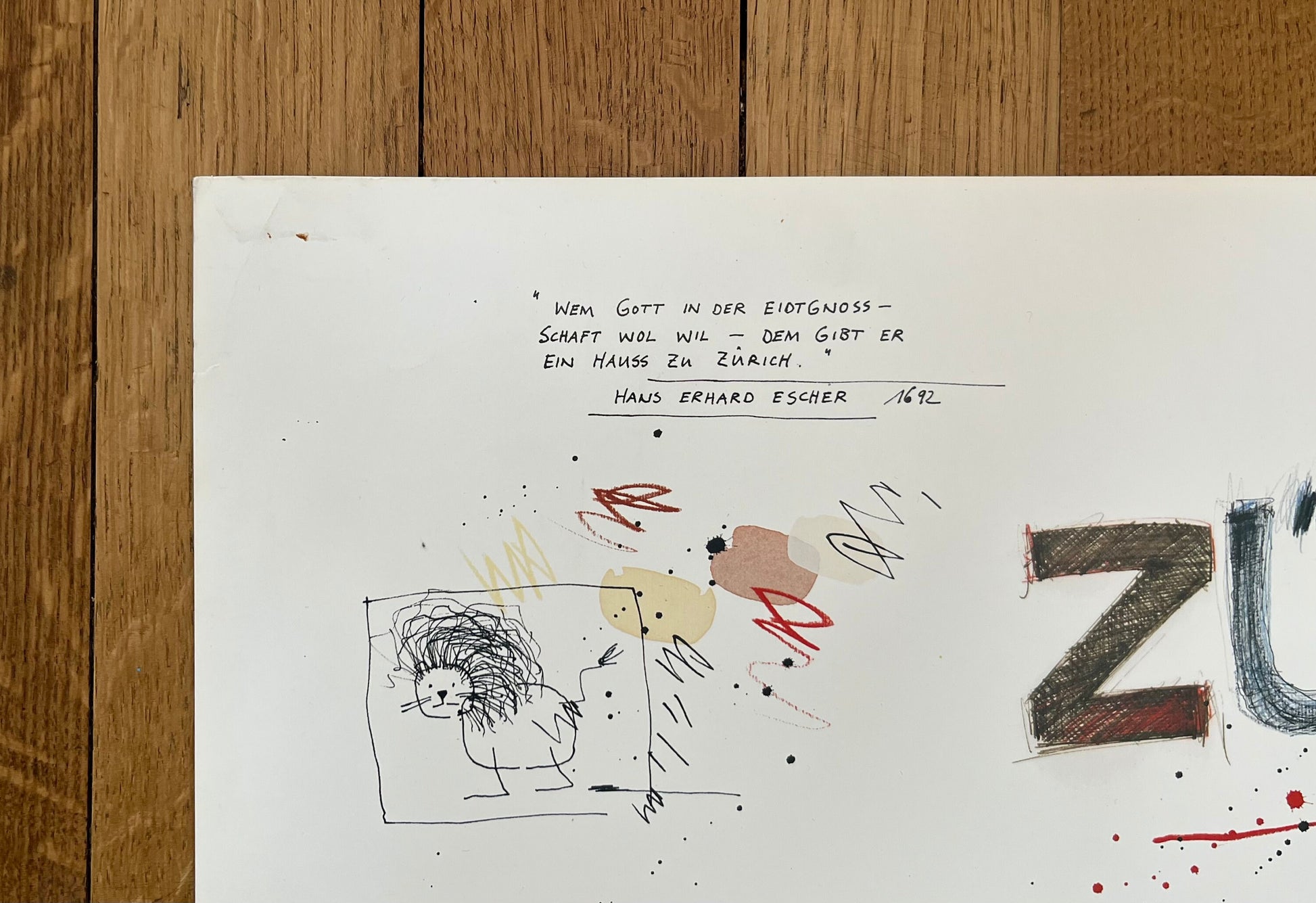 This is a beautiful art poster by Wilhelm Schlote featuring his work "Zürich". It is in ok condition with signs of handling along the borders, stains and a tear at the top left border.